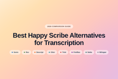 The best Happy Scribe alternatives in 2026 are Sonix, Rev, Descript, Otter.ai, Trint, Fireflies.ai, Notta, and Whisper. Each fills a different gap — from higher…